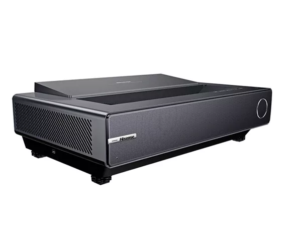 El Hisense PX1-Pro tiene un diseño moderno y compacto, ideal para quienes buscan un dispositivo que se integre fácilmente en su salón o espacio multimedia. Gracias a su tecnología de ultra-corta distancia, puede colocarse a unos pocos centímetros de la pared o pantalla, lo que lo hace perfecto para habitaciones pequeñas o entornos en los que el espacio es limitado. La estética es bastante sobria, con un acabado en color gris oscuro que lo hace elegante y discreto.
